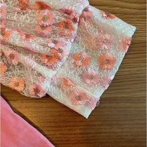 Stunning fitted mini dress with puff long sleeves, with sparkly embroidered ditsy floral all over the long sleeves.