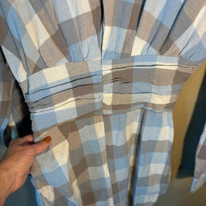 Atoir The Vision Dress in Air Force Blue Check, size 6, Contemporary, Chic,Retro, Partial front button closures and hidden back zip, Buttoned cuffs, Lightweight fabric with ruched sides, 100%Cotton, Hand Wash. In Good Pre-Owned Condition, Has Some Wash Wear. Approximate Measurements in Pictures.