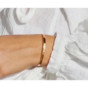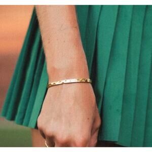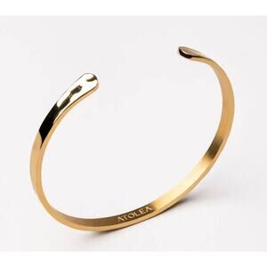 The Atolea Hammered Gold Cuff is a stylish bracelet made by the brand Atolea. This cuff is crafted with a hammered gold finish, giving it a unique and eye-catching look. The sleek design aligns with contemporary fashion trends and the quality craftsmanship ensures durability for long-lasting wear. Perfect for adding a touch of elegance to any outfit, this cuff is a versatile accessory for both casual and formal occasions.