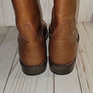 The Nutted Calf Boots are made the way boots use to be! Men's “Super Roper” Work Boot or riding boot is made from Tobacco Waxy Re-tanned Leather and are Fully Leather Lined, with leather welting. These boot have a medium round toe, 9" Top and a roper heal on them.