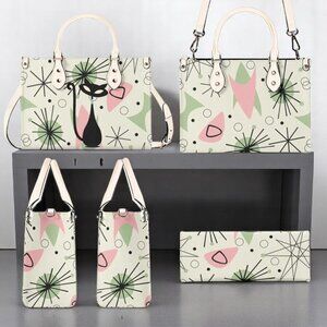 Vintage style Atomic Cat Mid Century Modern Starburst Satchel. Unique starburst design and spacious interior, it's the purrfect! choice for anyone with a retro-style vibe.