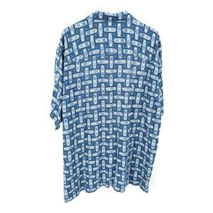Atomic Tiki 2XB Hawaiian Camp Shirt Men's Blue Surf Wooden Buttons Short Sleeve