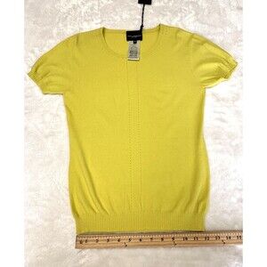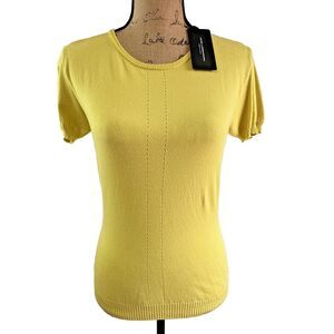 Atos Lombardini Womens Yellow Knit Short Sleeves Crew Neck Soft Sweater Sz 10/46