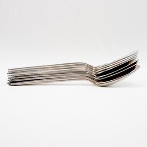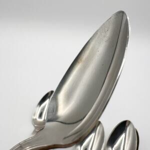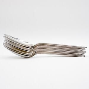These lovely silver plated spoons set have a wonderful chic look! The classic geometric pattern, known as Twelve, works well with decor of all kinds. Everything from midcentury modern to farmhouse and everything between would pair well! There are 8 spoons in this set. This makes the set perfect for finishing an existing set, pairing with an assortment, or for use crafting and jewelry making.