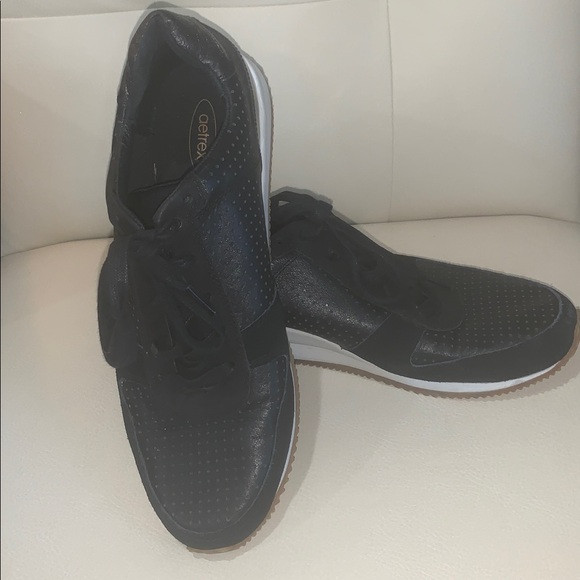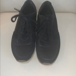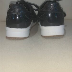 Like new! Only worn a couple of times. Leather exterior, no scuffs on soles( (sticker still attached to sole of shoe).No scratches to leather. Very fashionable sneaker.