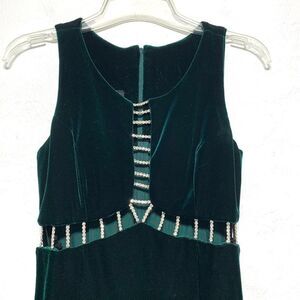 Atria Vintage Velvet Emerald Green Formal Gown Full Length Witch Diamonds sz 4