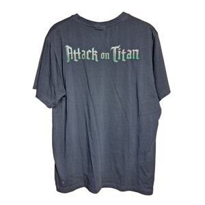In good condition Size tag missing but is a mens size large soft Grey cotton with badges titan attach on titan Mikasa graphic print with colorful comic Manga design