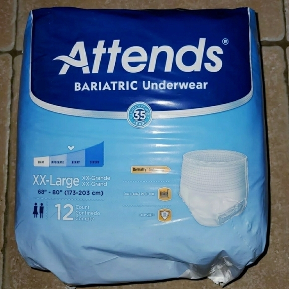 Attends Adult Bariatric Unisex Underwear XX-LG 2XL 12 Count - Heavy 68"-80" This item is new in package.