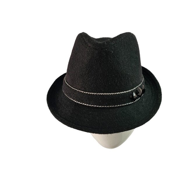 Attention Black Wool Fedora Hat Silver Blinged Trim Retro Modern Womens OS