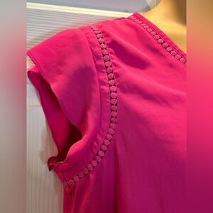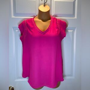 Attention Blouse Women's XL Solid Pink Dot Embroidered Trim Cap Sleeve V Neck; Gently and minimally worn, well cared for. Style: 883474047425