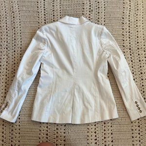 Crisp white blazer. Classic design with button closure. Perfect for any occasion. Excellent condition and great quality. This looks awesome with neutrals and denim!