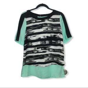 Attention Mint Green & Black Abstract High-Low Blouse | Size S