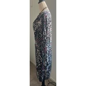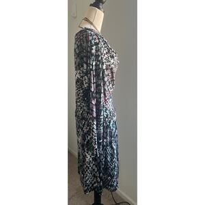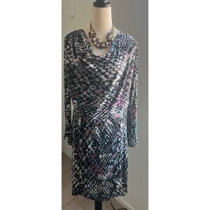 Attention Multicolor Long Sleeve Cowl Neck Cinched Elastic Waist MIDI Dress XL