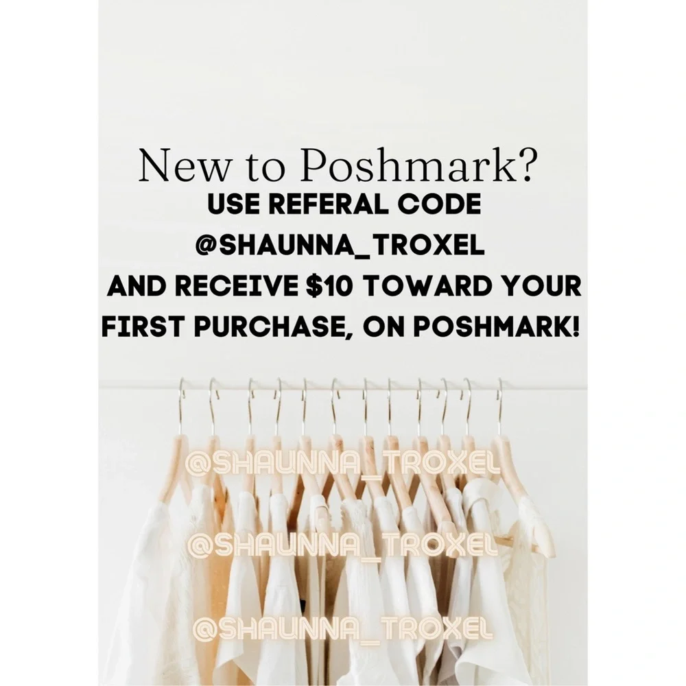 All new poshmark users can get $10, towards their first purchase by creating an account today using referal code: @SHAUNNA_TROXEL
