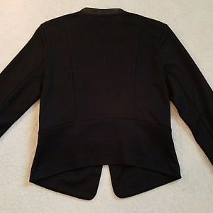 So sophisticated! A touch of elegance through the pleather details at the front, lining the faux pocket opening, and around the collar. Dress it down, dress it up; make this your new go to in your closet to complete that look! Comes from a smoke free home!