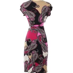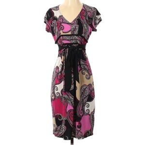Attention Pink Paisley Belted Casual Dress XS short sleeve mini stretch xs