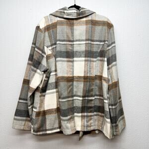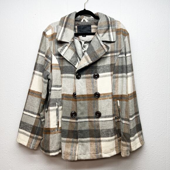Attention Plaid Fleece Double Breasted Pea Coat Womens 2X Outdoors Wool Blend