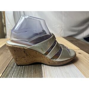 Attention Sandals Womens Size 8 M Silver Wedge Slip On Open Toe Comfy Academia