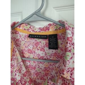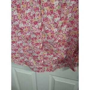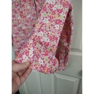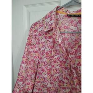 Attention Woman 14 Shirt V Neck Pink Floral Fold Cuff 3/4 Sleeve Collared Button