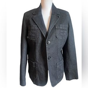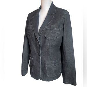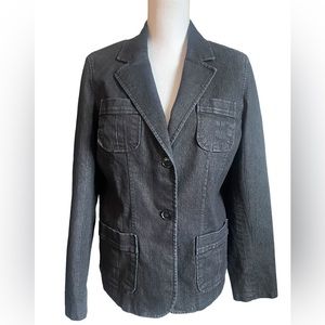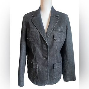 Attention Women’s Black Denim Double Button Blazer Jacket Pockets Lined Size 14