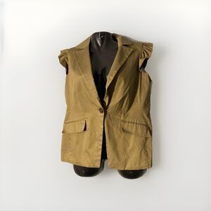 Attention Women's Vest Ruffle Shoulder Size 16 Olive Green
