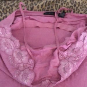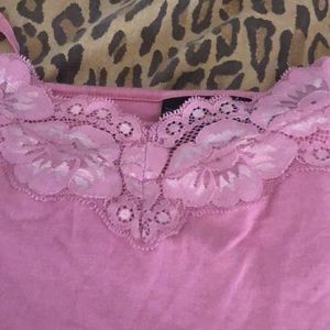 Attention set of two camisoles Rose Pink & Black lace trim stretch adjustable bra top camisole