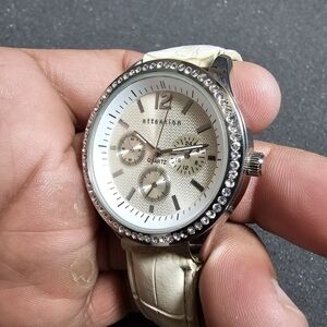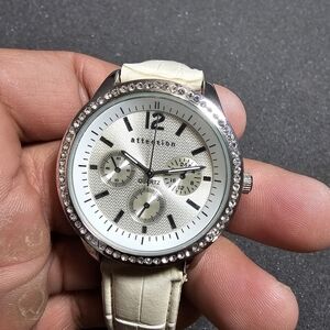 Attention ladies quartz fashion watch silver tone rhine stone bezel working show
