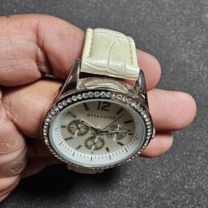 Attention ladies quartz fashion watch silver tone rhine stone bezel working shows signs of wear such as light scratches on case and crystal see pictures fpr reference