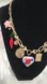 This exquisite gold charm necklace features vibrant accents, including red, pink, and blue charms. Perfect for adding a playful touch to any outfit.