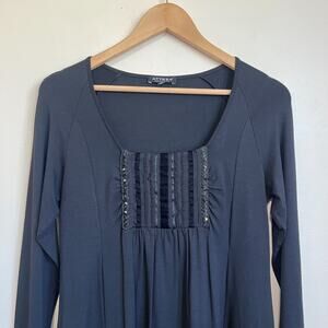Attesa Maternity Midi Dress Size S Black Stretchy Whimsy Embroidery Sequin Italy