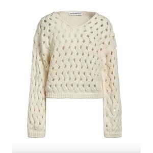 Attic and Barn Cream Open Knit Sweater Italian Wool Blend Cropped Pullover