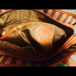 Classic stripes adorn this Aigner purse. Tons of interior space and several pockets give an abundance of extra room. Is in excellent condition with no tears, holes, rips or stains
