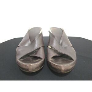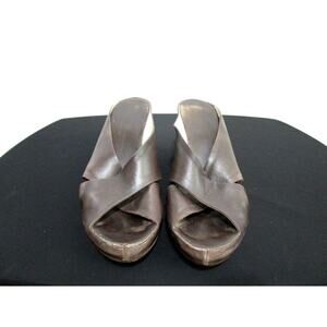 Attilio Giusti Leombruni Brown Leather Slide Wedge Comfy Heels Sz 39.5 EU/8.5 US