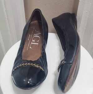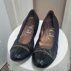 Attilio Giusti Leombruni Chain Detail Black Flats Size 6.5