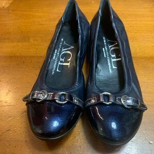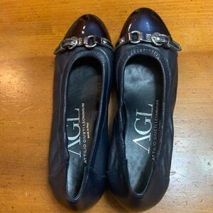 Attilio Giusti Leombruni Monika Cap Toe Ballet Flat In Black & Navy size 38 or 7.5