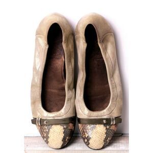 Attilio Giusti GRAY CREAM SNAKE PRINT GENUINE LEATHER FLAT BALLET SHOES Sz 9/39