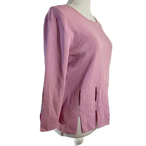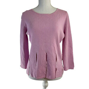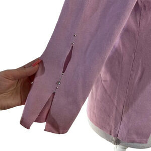 Attitude Y2K Pink Blouse Slit Hem Rhinestone Embellished Stretch Bling Stretch