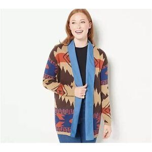 Attitude by Renee Southwest Cardigan with Denim Lapel Womens L Aztec Sienna NEW