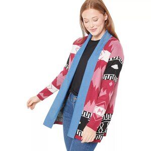Attitude by Renee Southwest Cardigan with Denim Lapel Womens XS Aztec Rose NEW