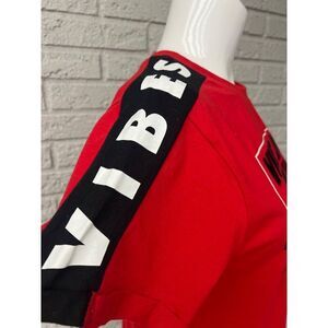 • Short sleeves with VIBES written on both sleeves