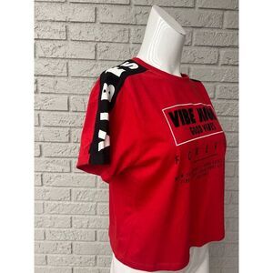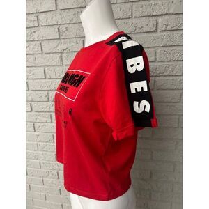 Attitude Not Included Women Red Graphic Cropped T-Shirt Size XS