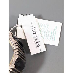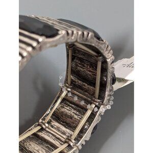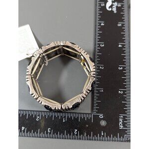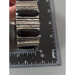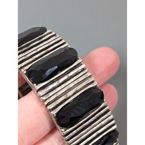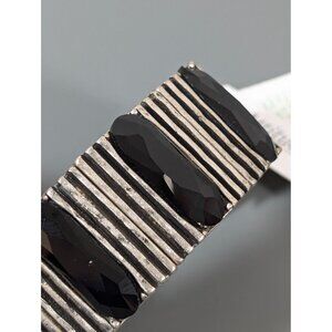 Attitudes Black Glass Bracelet Industrial Modernist Silver Tone Stretch 6.5"