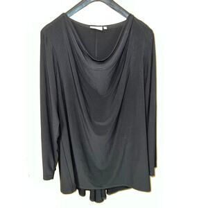 Attitudes By Renee 3X TUNIC TOP High Low Back Pleat Black Drape Neck QVC 26W 28W