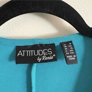 Attitudes By Renee Women 1X Teal Pockets Cascade Open Front Jersey Cardigan.