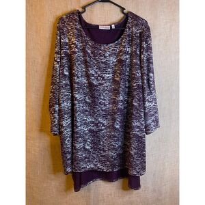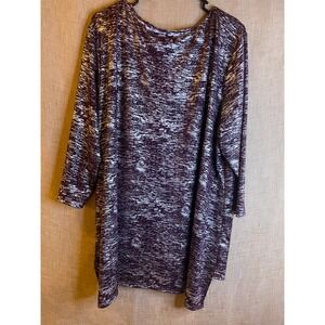 Keywords: Attitudes by Renée, tunic top, plus size, 3X, long sleeve, space dye, knit top, plum, silver, womens top, casual top, relaxed fit, comfortable top