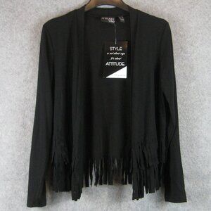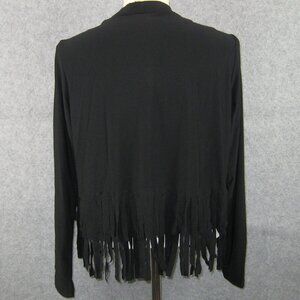 Attitudes by Renee Black Como Jersey Fringe Jacket M NWT