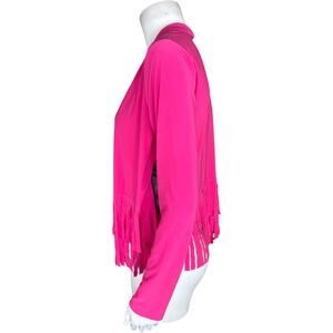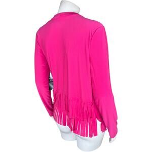 Attitudes by Renee Como Jersey Knit Fringe Cardigan Lipstick Pink X-Small NWT