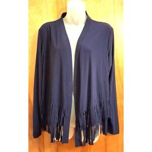 Attitudes by Renee Como Jersey Knit Fringe Cardigan cape cover Black Size XL NWT