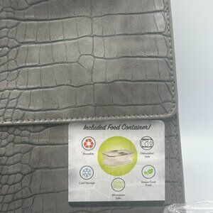 with our modern faux crocodile lunch tote. The exterior has a side pocket to