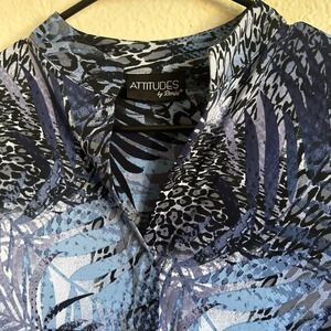 Attitudes by Renee Womens Tunic Asymmetric Duster Navy Print XS